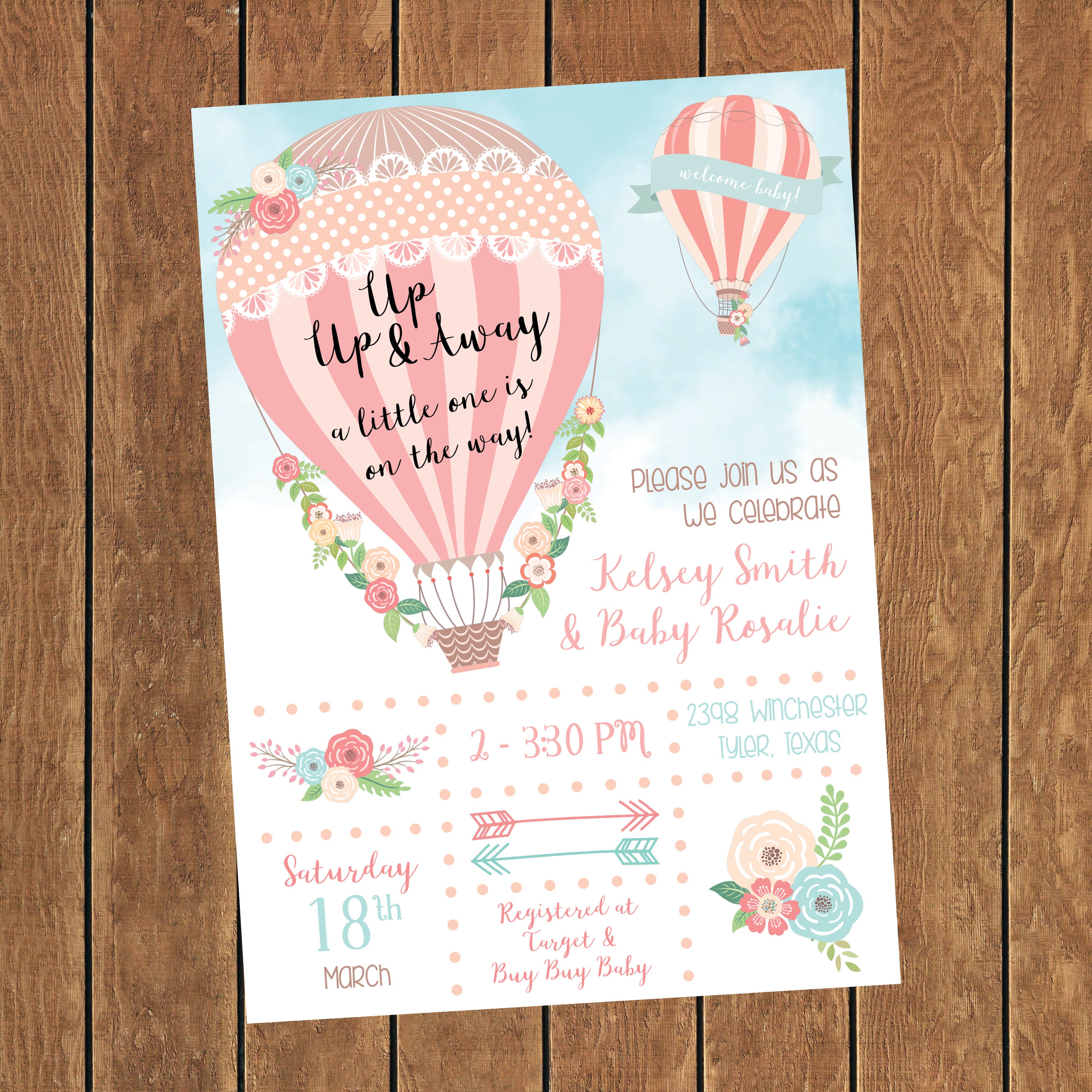 Hot Air Balloon Baby Shower Invitation Girl Baby Shower Hot Etsy